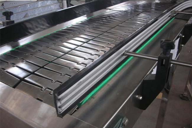 鏈板輸送機是以鏈板為載體,進行輸送物料,從而滿足飲料貼標、灌裝、清洗設備的單列輸送的要求,鏈板輸送機利用固接在牽引鏈上的一系列鏈板在水平或傾斜方向輸送物料的輸送設備。常見的鏈板輸送機形式以水平、爬坡、循環(huán)、環(huán)形輸送為主,使用的環(huán)境也各不相同,它被廣泛應用在包裝、飲料生產、機械制造非常廣泛的應用。